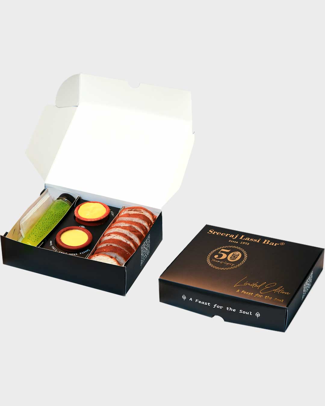 Sreeraj Special Box A fresh combo of drinks and snacks packed with taste! Inside the Box: Mango Kulfi Flavoured, Milk Kesar Kulfi Flavoured, Milk Milk Bread Slices, Mango Mirchi Sharabath