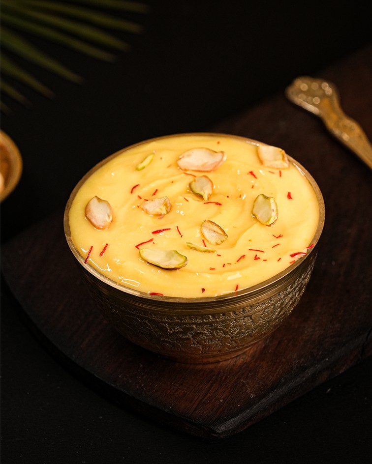Shrikhand 250g is a traditional Indian sweet yogurt dessert made from strained yogurt, flavored with cardamom, saffron, and often garnished with nuts or dried fruits. It has a creamy, smooth texture and a rich, mildly sweet flavor. The 250g container is ideal for enjoying as a standalone dessert or as a complement to other dishes.