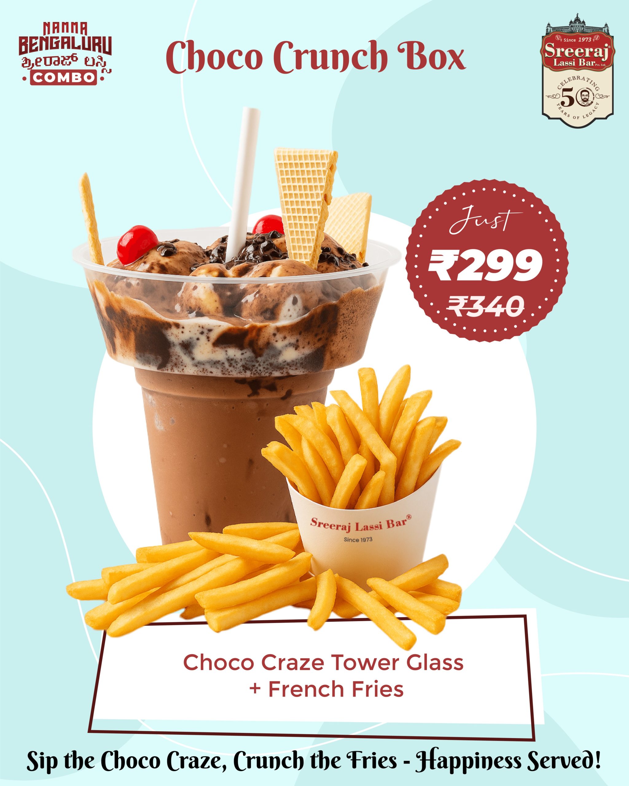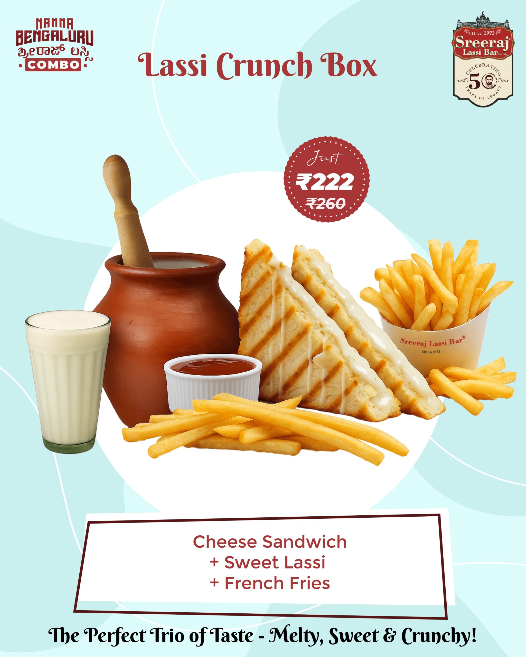 Lassi Crunch Box Combo – Cheese Sandwich, Lassi & Fries!